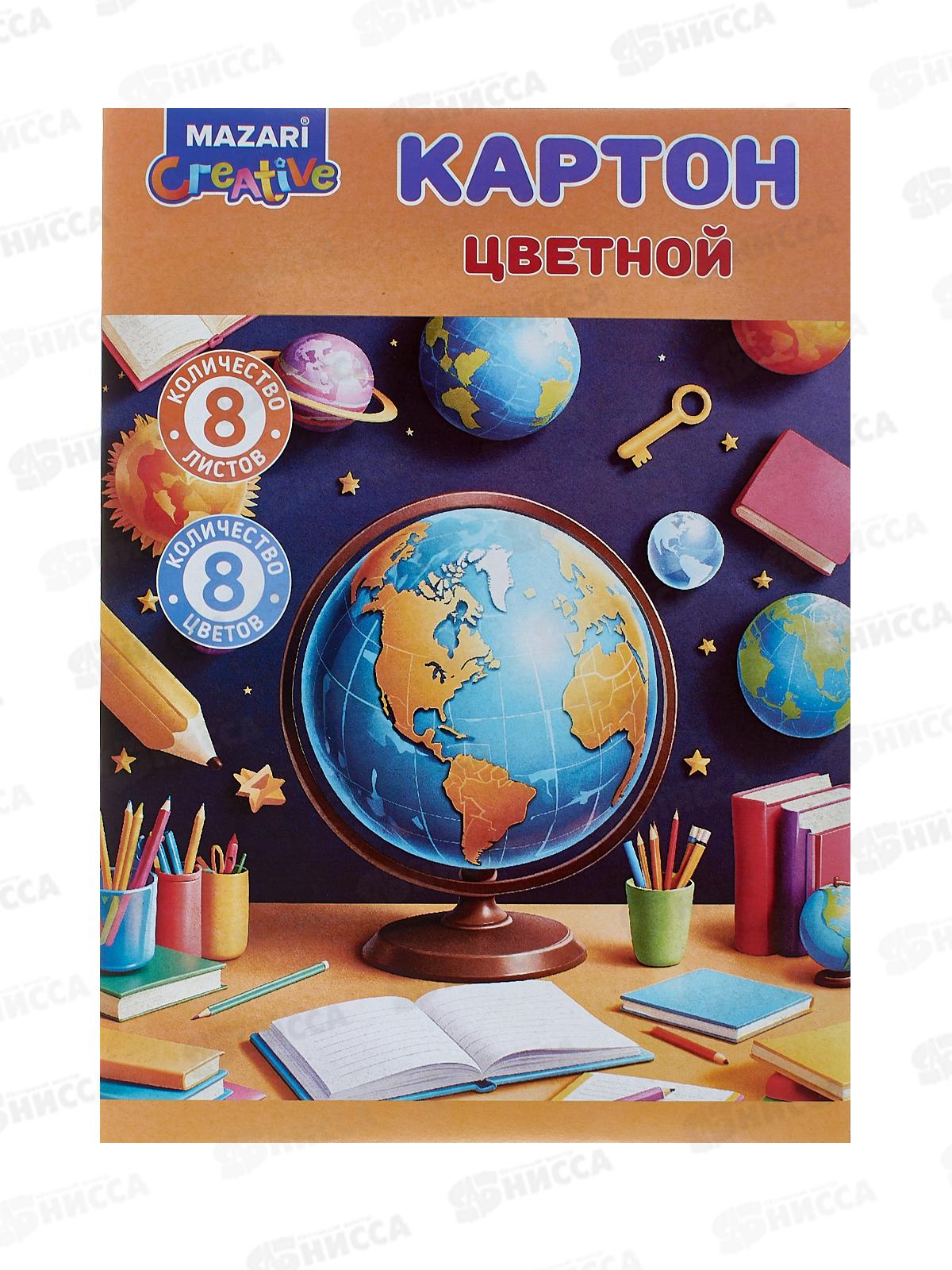 Код:606356; Цветной карт.MAZARI 8л. 8цв,немел., 200*280мм 200г/м2 М-17424 *50