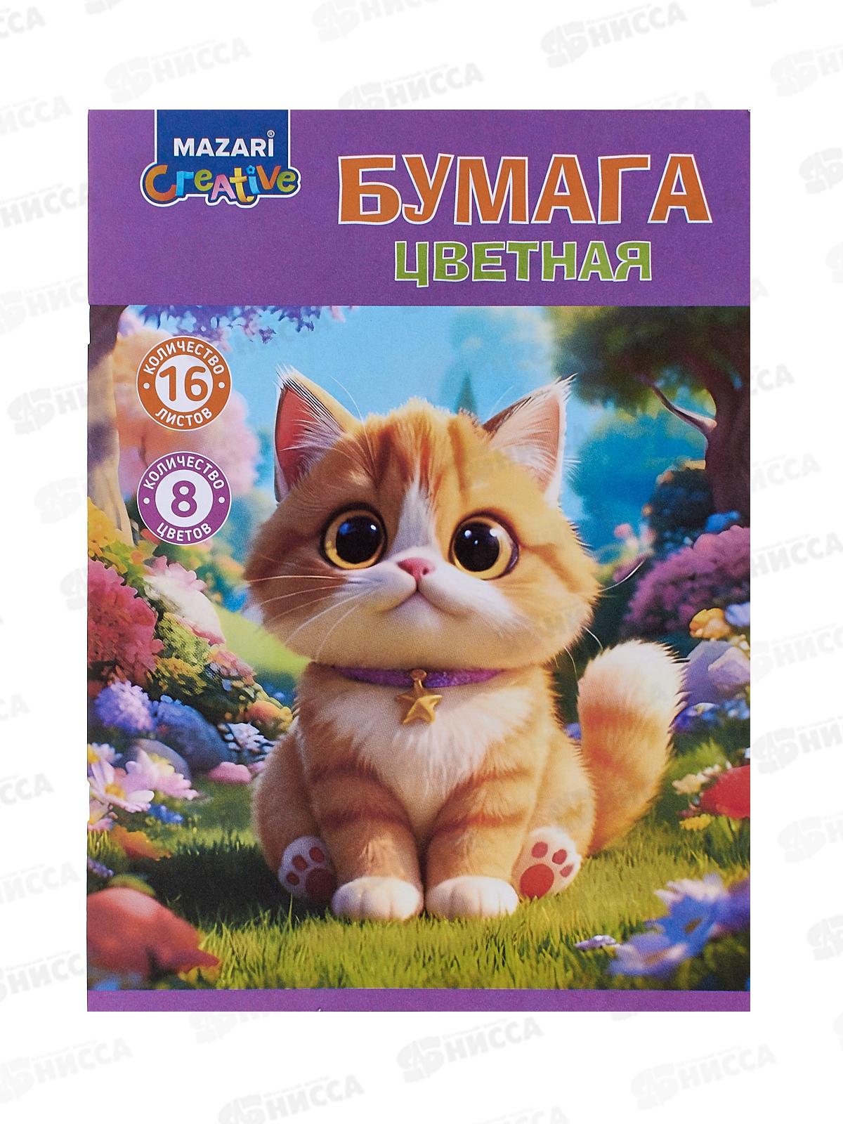 Код:606378; Цветная бум. 16л 8цв MAZARI ,офс.,одност.,200*275мм 45г/м2 M-17401 *50
