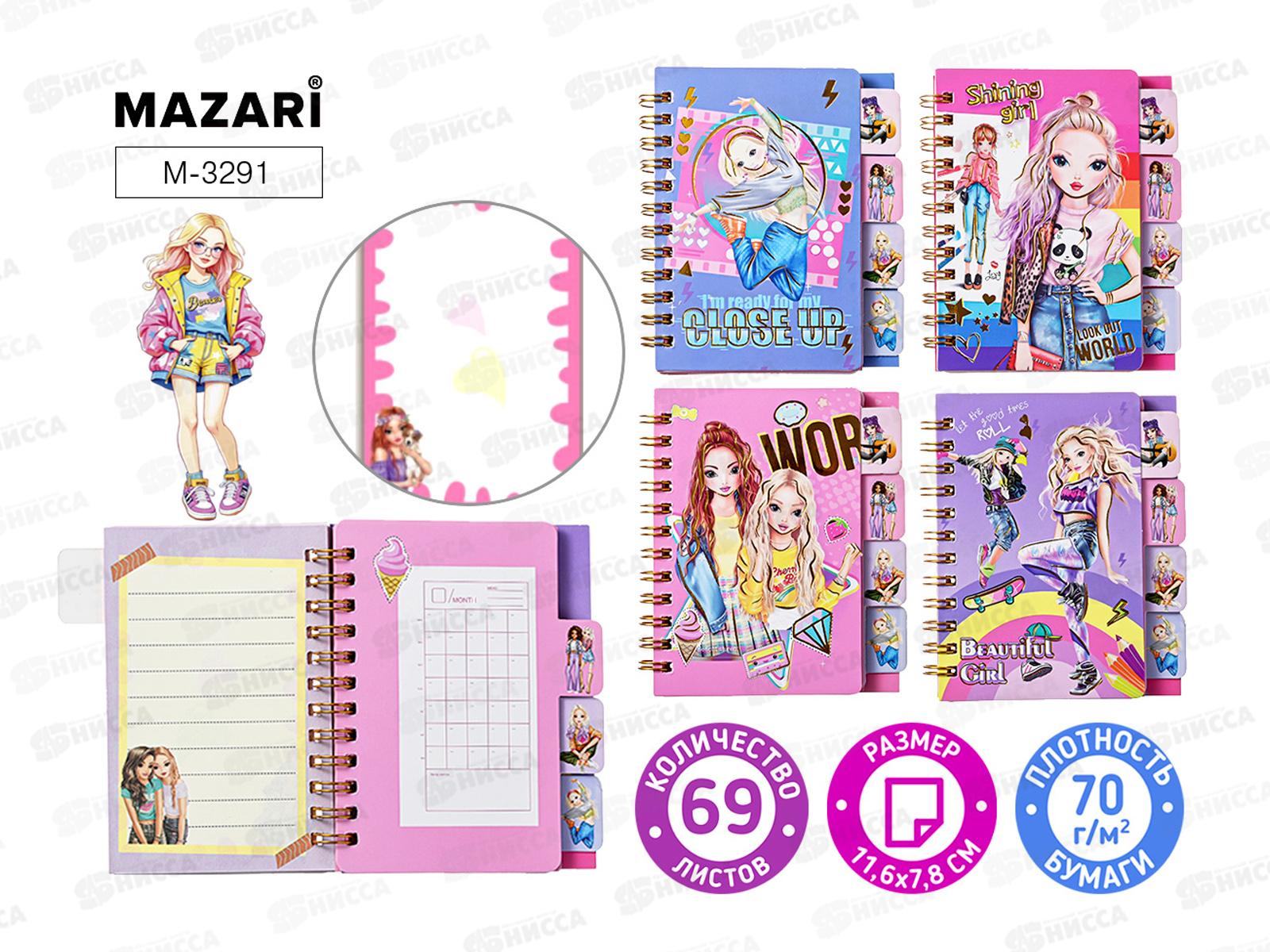 Код:556896; Блокнот 80л MAZARI Девочки 9*12,4см M-3201 *16