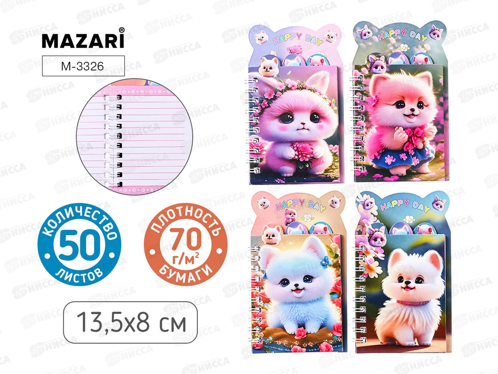 Код:602918; Блокнот 50л MAZARI Собачки 13.5*8см греб. 4диз. M-3326 *12