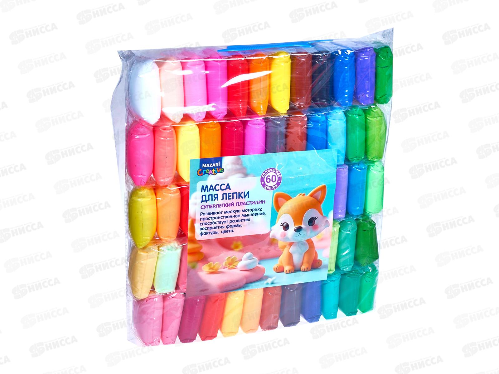 Код:577844; Масса д/лепки MAZARI 60цв.,стек3шт,.М-4197-60