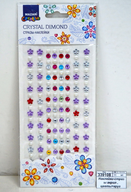Код:339108; Наклейки-стразы акриловые , цветы+круг 164шт.М-8709 асс*12