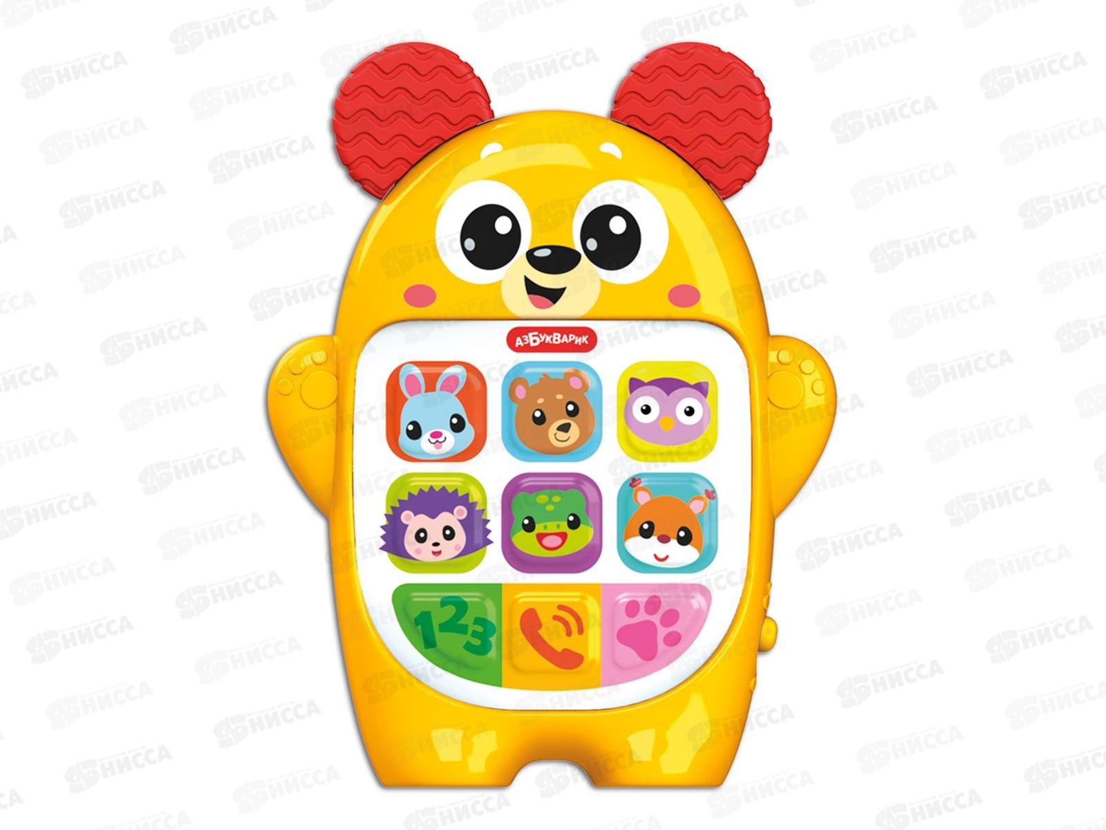 Необычный музыкальный смартфончик для малыша – в виде забавного Мишутки! Нажимая на кнопочки, ребёнок послушает песенки про лесных животных и поиграет в увлекательные игры. Игра «Позвони зверятам» – малыш сможет позвонить Мишутке и его друзьям, и зверюшки ответят ему. А во второй игре – «Угадывай зверятам по голосам» – ребенок узнает по звуку зайчика, сову, ёжика, лягушку, белочку и мишку. Весёлые песенки-обучалочки помогут маленькому умнику научиться считать до 5, познакомят с основными цветами и формами. Всего в смартфончике собрано 6 песенок про зверят, 3 обучающих песенки, 25 забавных звуков, фраз, рингтонов, 6 игровых заданий. Такая игрушка не только развлекает, но и развивает музыкальное восприятие ребёнка, воображение, мелкую моторику, а силиконовые рельефные ушки способствуют развитию тактильных ощущений.
