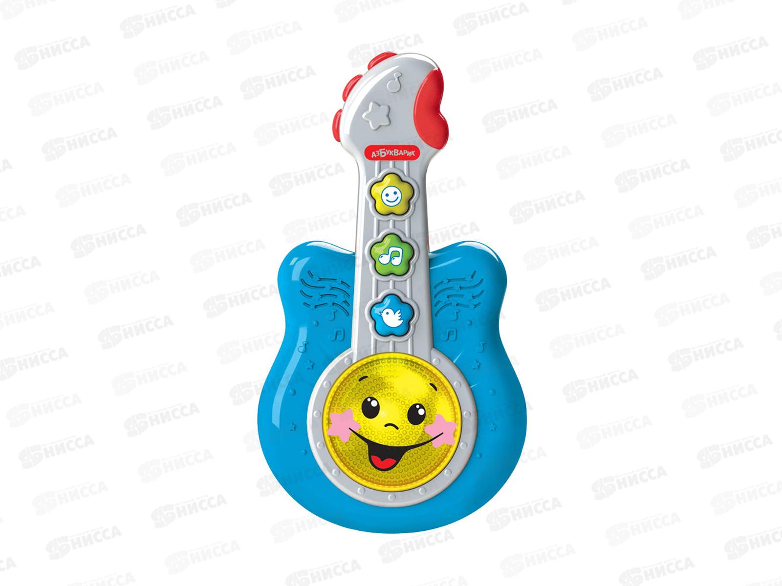 Яркая игрушечная гитара подарит малышу отличное настроение и поможет ему раскрыть музыкальный талант! Нажимай на кнопочки – слушай 25 песенок, мелодий и звуков («Какой чудесный день!», «Ничего на свете лучше нету», «Чунга-чанга», «Весёлая карусель», «Песня Львёнка и Черепахи», «По дороге с облаками», «Друзья», «Песенка про кузнечика» и др.) Во время звучания песенок и мелодий мигает огонек.