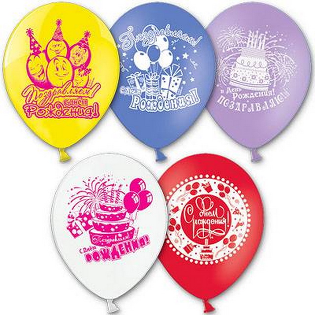 Шары из натурального латекса, c рисунком в виде надписи С ДНЕМ РОЖДЕНИЯ на фоне цветов, подарков, сладостей и шаров. Печать с двух сторон, одноцветная...