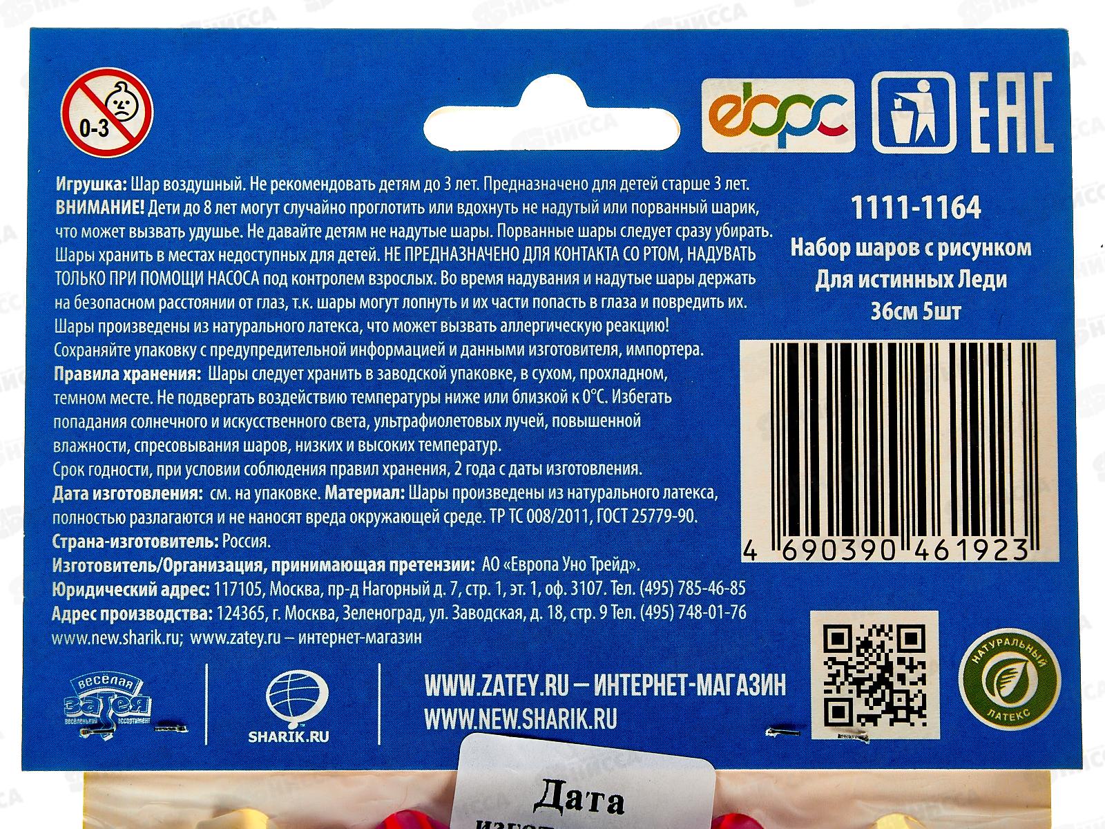 Набор шаров рис Для истинных Леди 36см, 5шт, 1111-1164