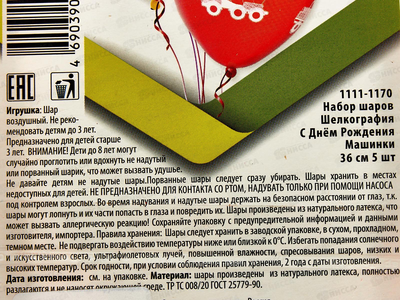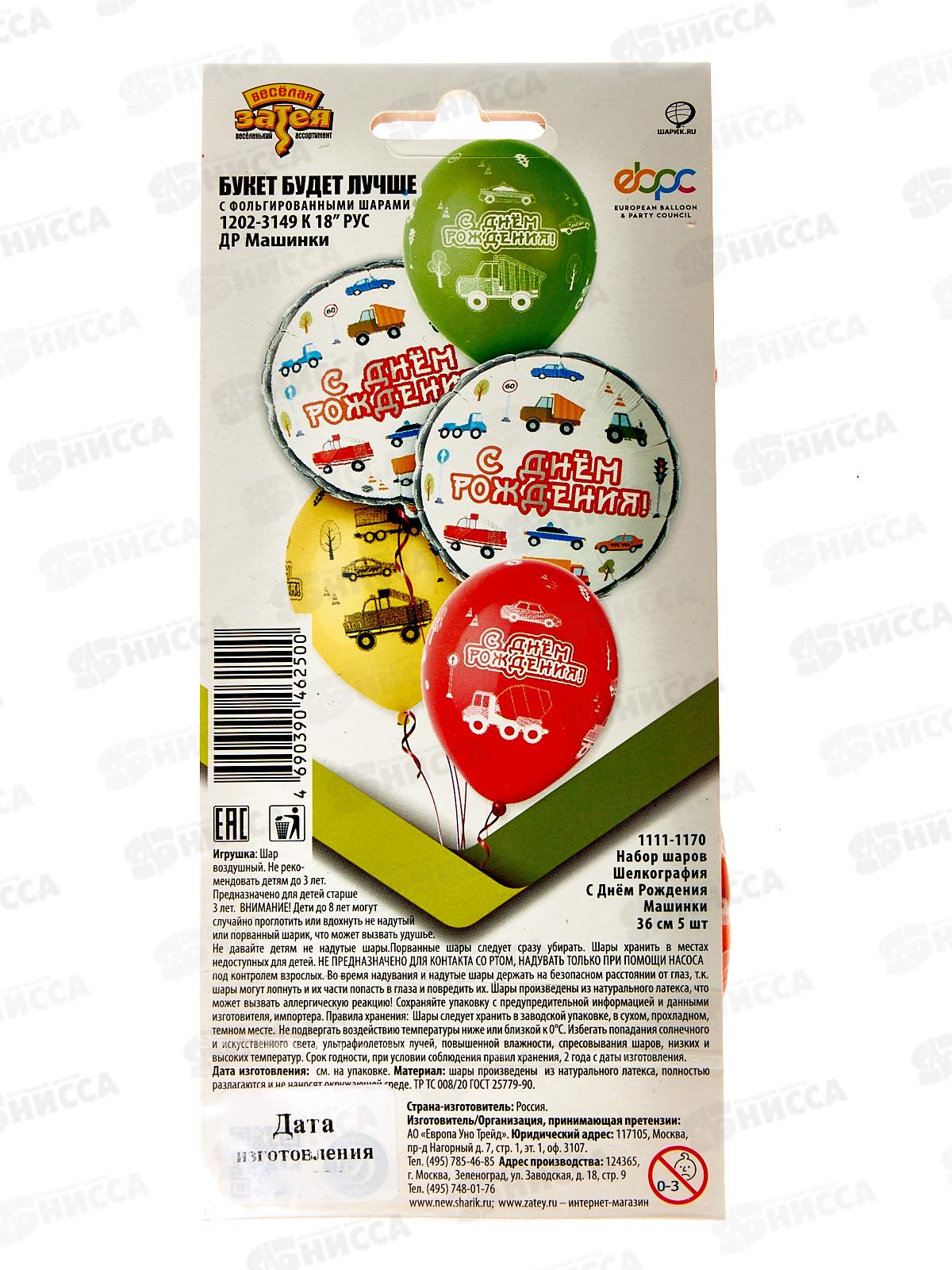 Набор шаров шелк С ДР Машинки 36см, 5шт, 1111-1170