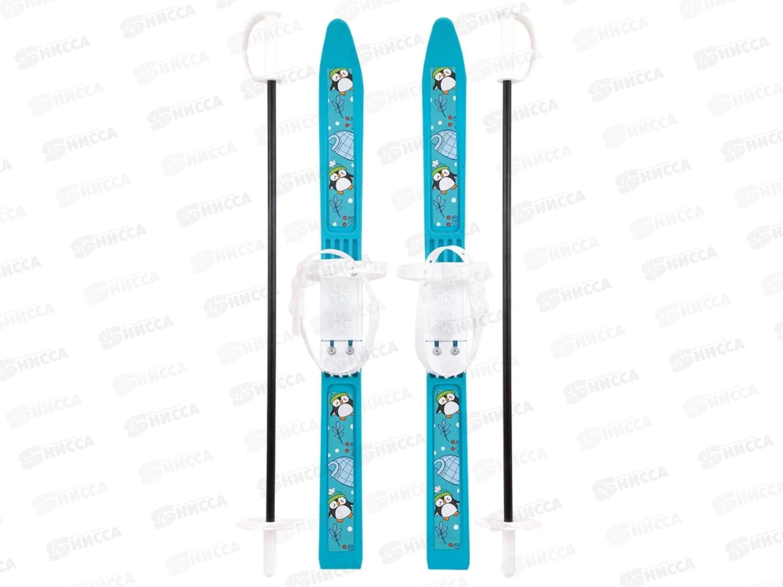 Код:580061; Лыжи мини «Олимпик-спорт» Пингвины 66/75см, крепление мягкое пластиковое, с палками стеклопластик (в сетке), МПЛ 102.00