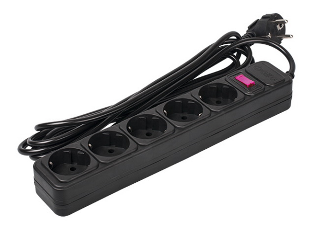Код:385060; Сетевой фильтр ФАZA 5 розеток, 5.0м, FOP-05GS-500 черный *25