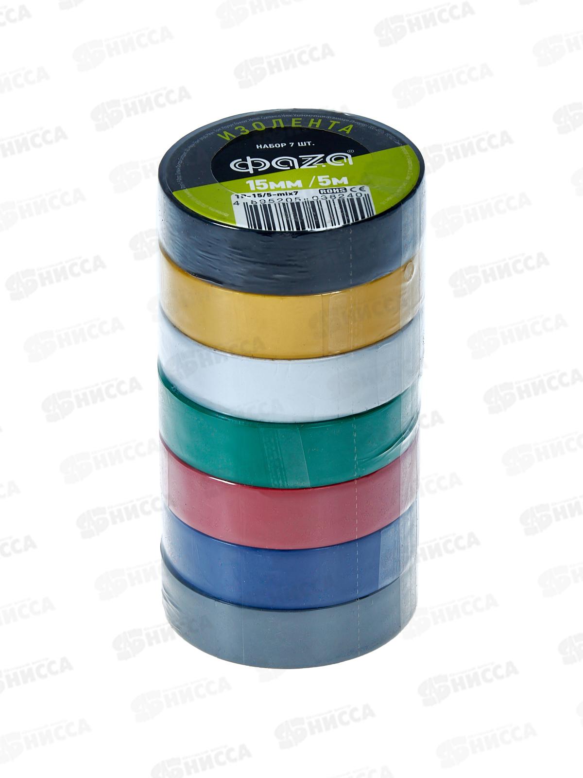 Код:494584; Изолента ФАZA 15мм, 5м 7цветов (цена за 7шт) *50