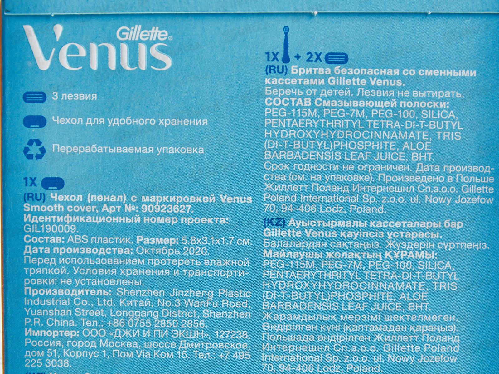 Жиллет ВЕНУС станок с 1 кассетой+венус сменные касеты 3шт+чехол *36*12*6