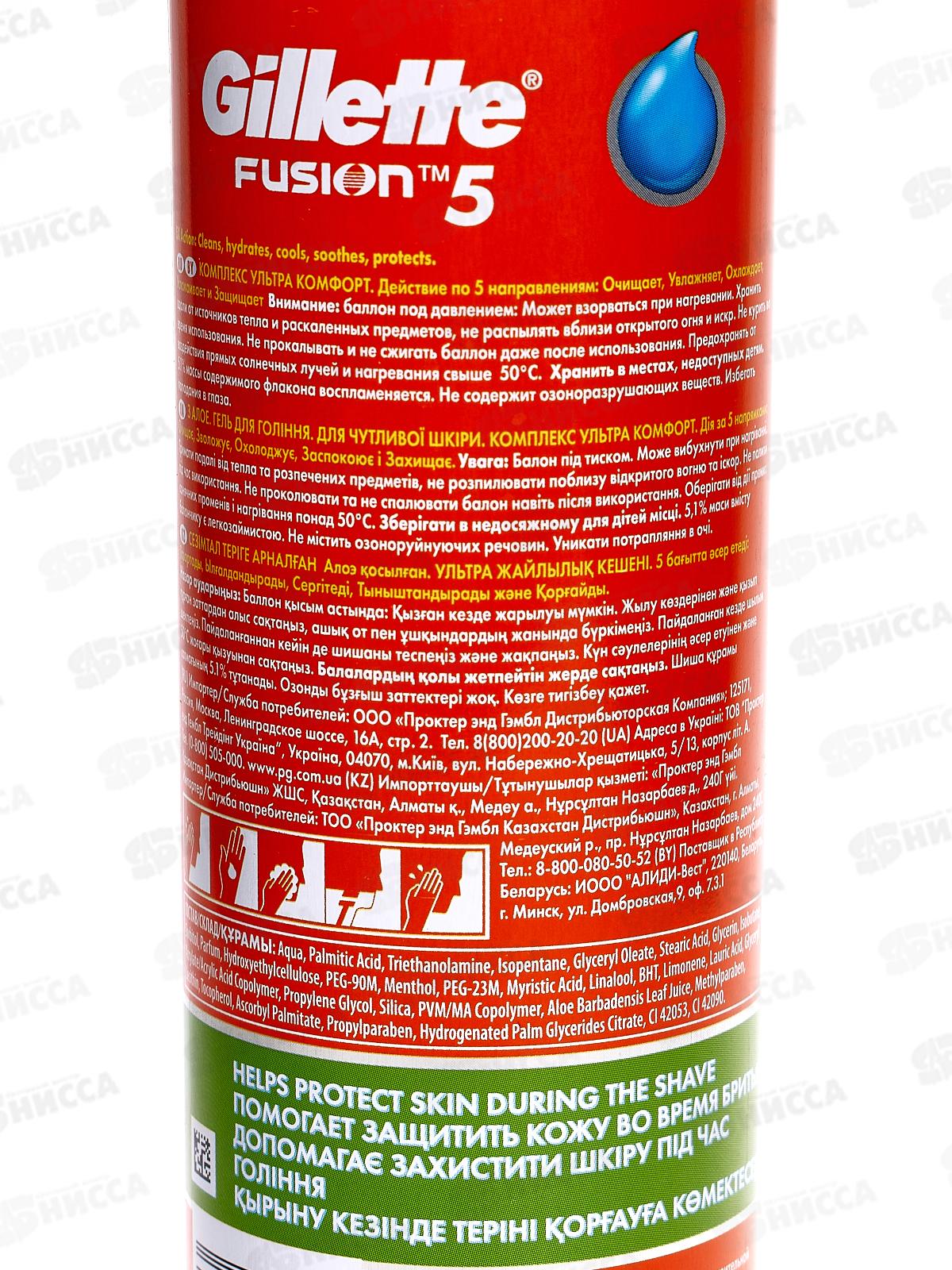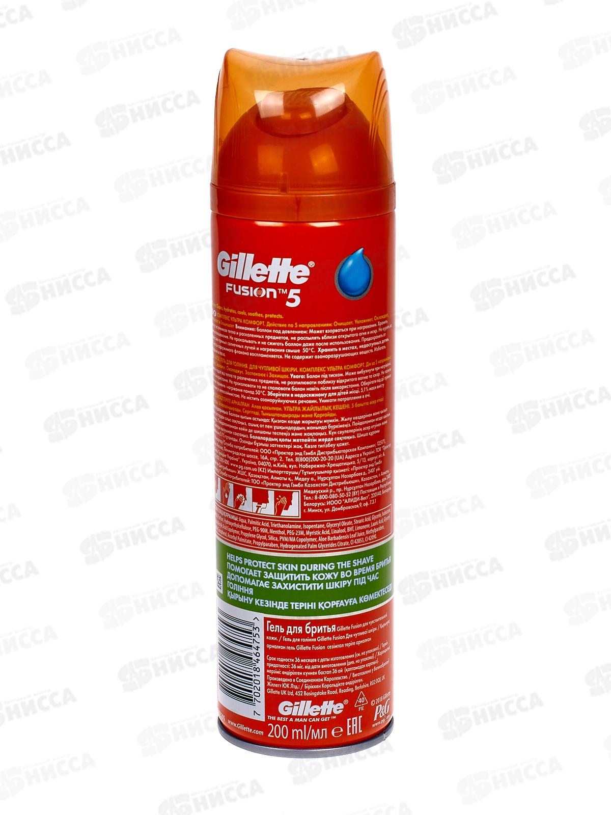 Жиллет Fusion гель для бритья 200мл для чувствительной кожи *6