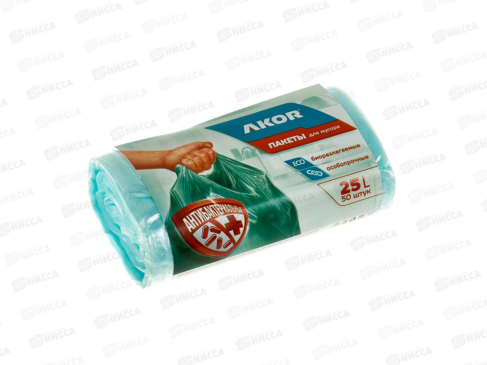 Код:591830; Пакеты для мусора "АНТИБАК+БИО" 25л 50шт, бирюзовый, 205-102 *70