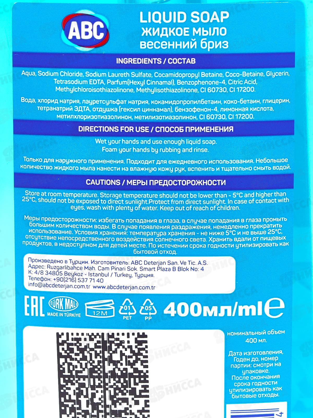 ABC Жидкое мыло Весенний бриз 400мл *12