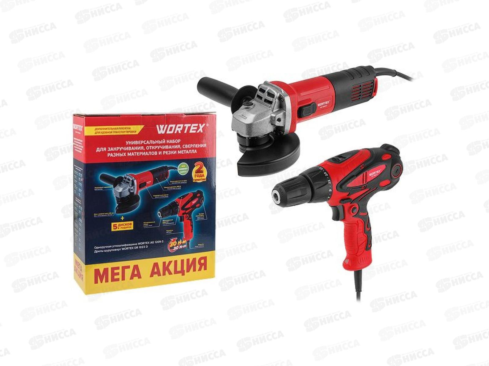 Код:574992; Набор электроинструмента WORTEX одноручная ушм + аккум. дрель-шуруповерт в коробке