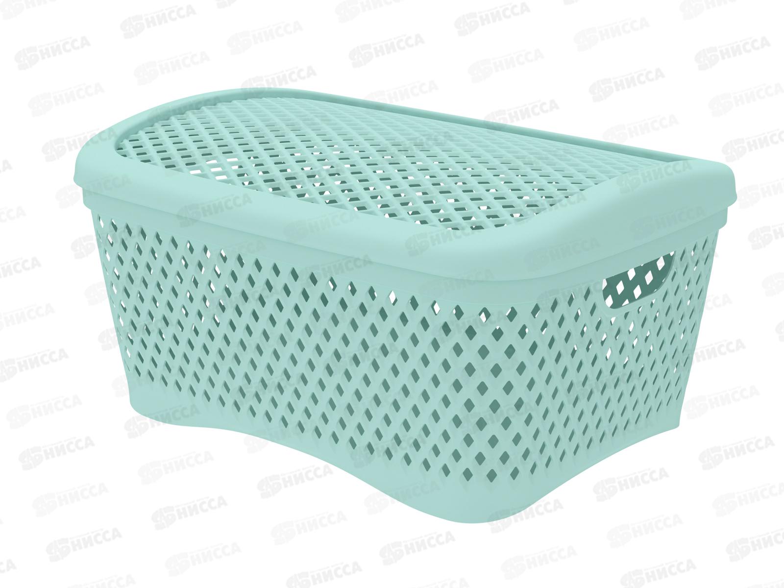 Код:580876; Корзинка с крышкой "Ромбики" L мята, АП 459 (340х250х170мм)