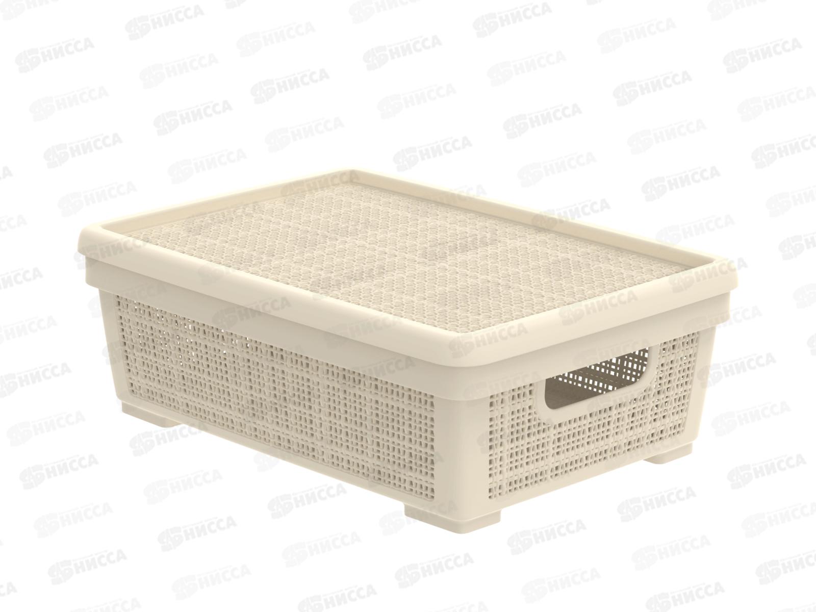 Код:581102; Корзина плетёная с крышкой "Лён" 11л, слоновая кость, АП 451 (400х284х137мм)