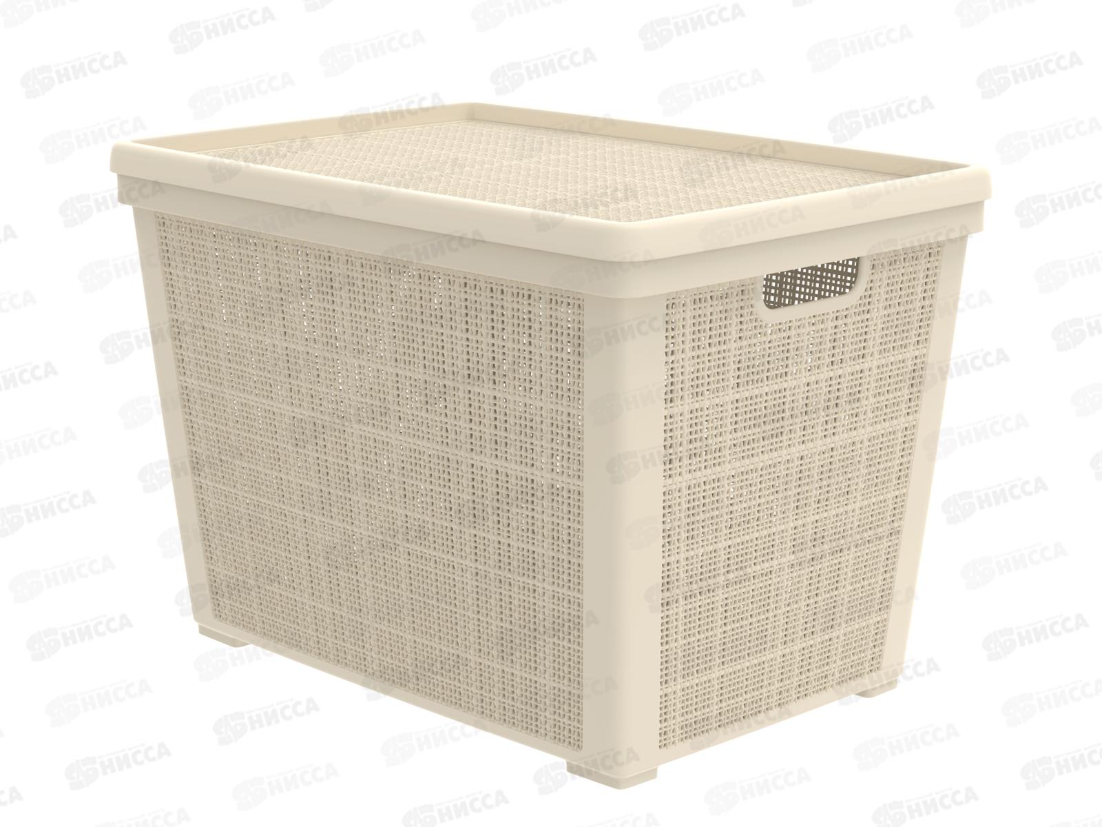Код:581109; Корзина плетёная с крышкой "Лён" 35л, слоновая кость, АП 453 (568х400х203мм)