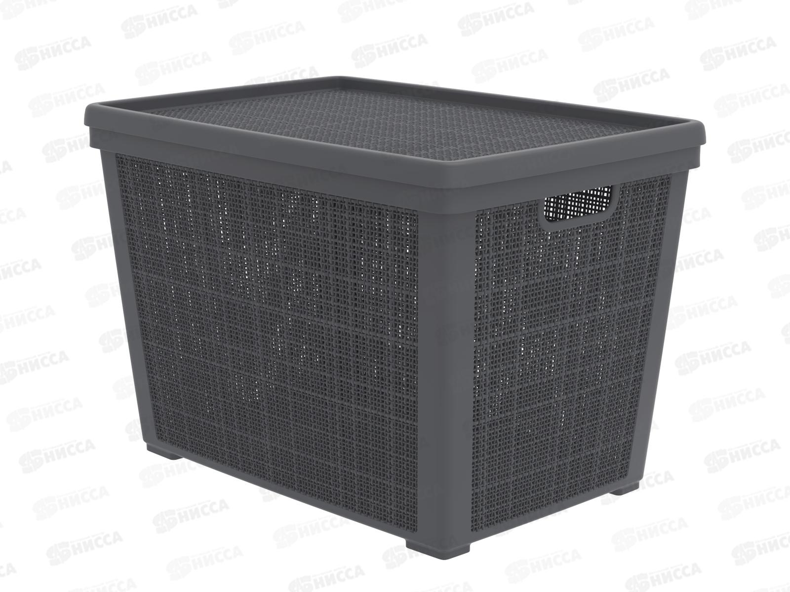 Код:581111; Корзина плетёная с крышкой "Лён" 35л, графит, АП 480 (568х400х203мм)