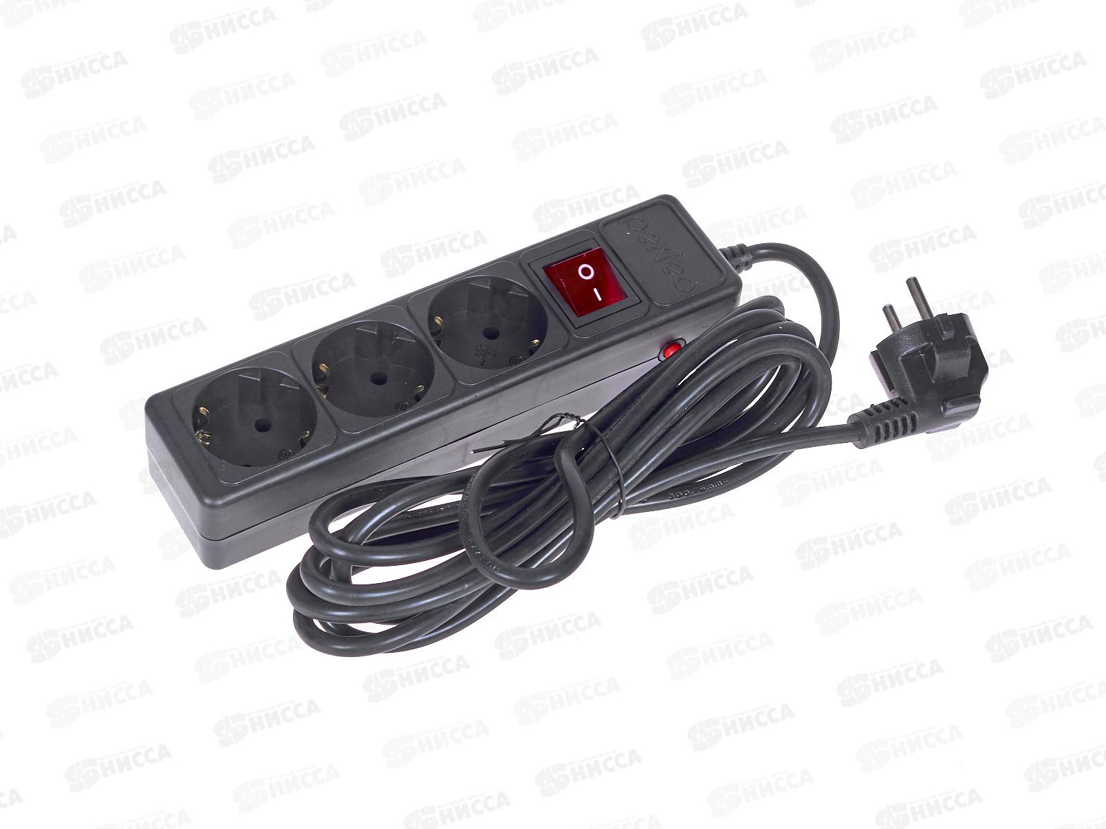 Код:433902; Удлинитель Perfeo "RU POWER" без заземления, 3,0м, 3 розетки, чёрный, 4066