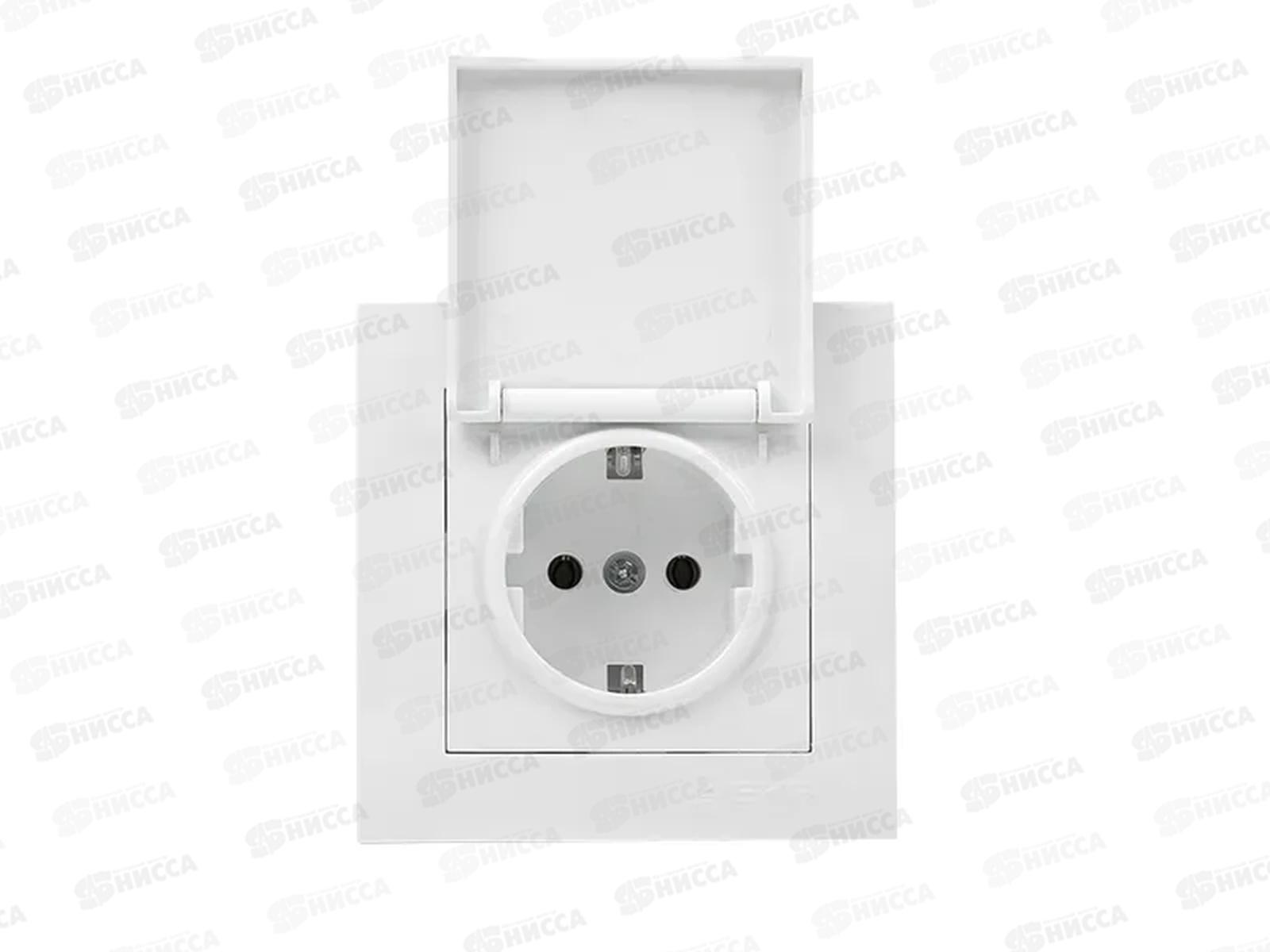 Код:593084; Розетка EKF Минск одинар. СП с заземлением с крышкой 16А белая EKF
