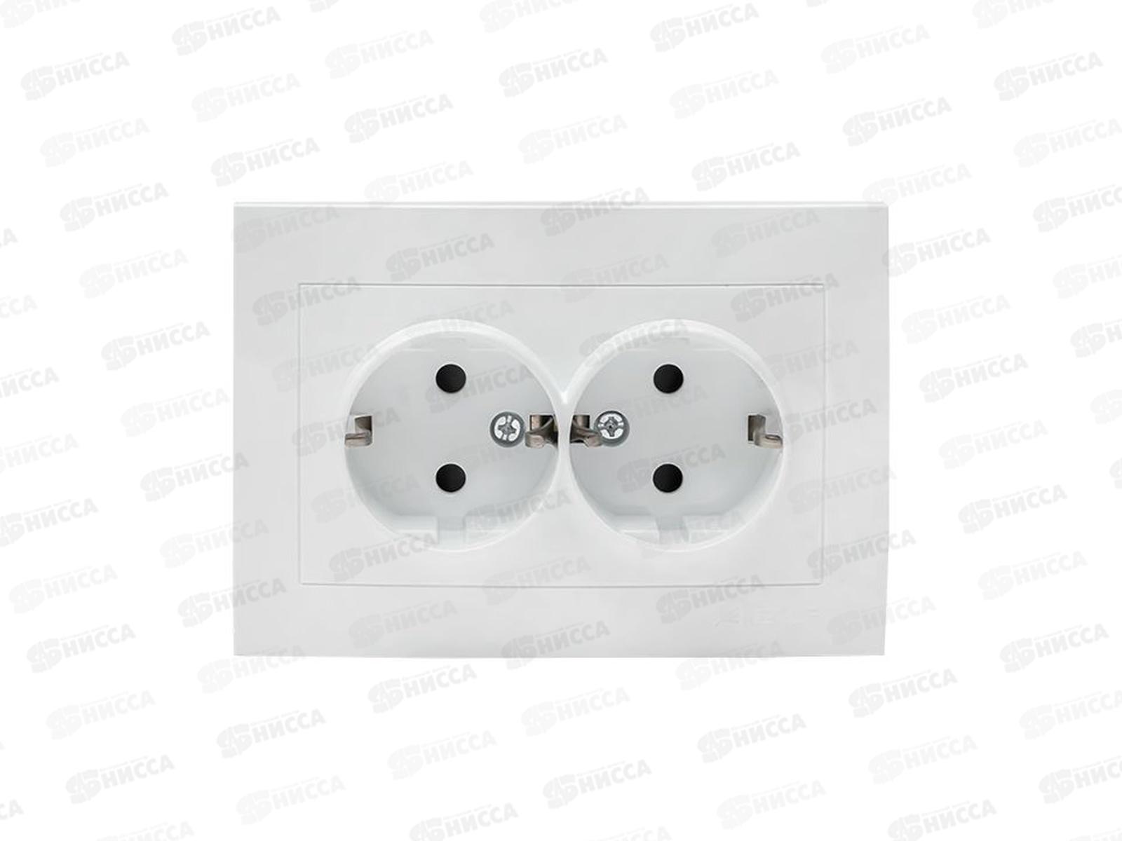 Код:593085; Розетка EKF Минск двойная СП 10А з/ш, белая EKF