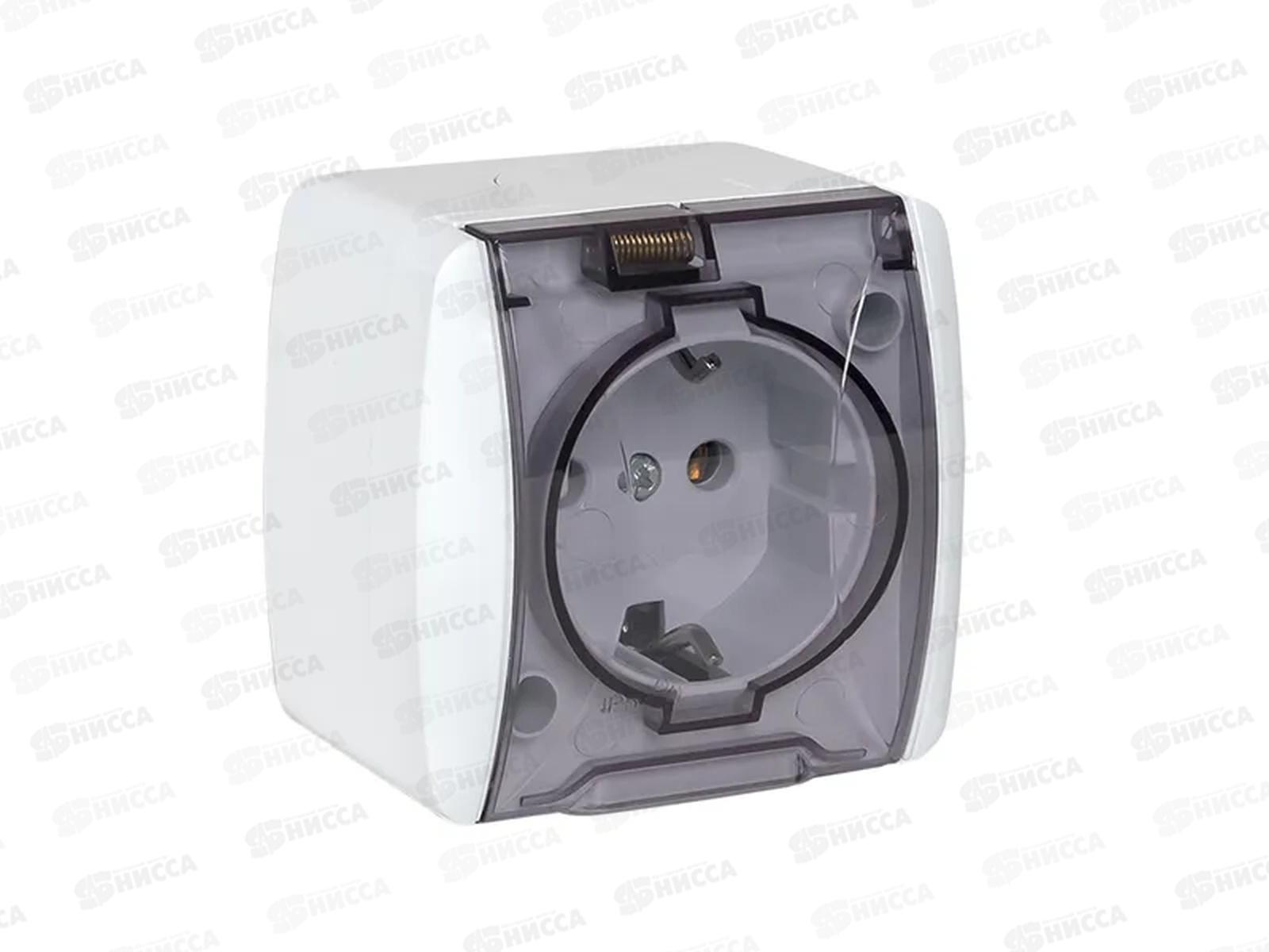 Код:582315; Розетка EKF Владивосток Розетка одинарная 16А с заземлением, с прозрачной крышкой, IP54