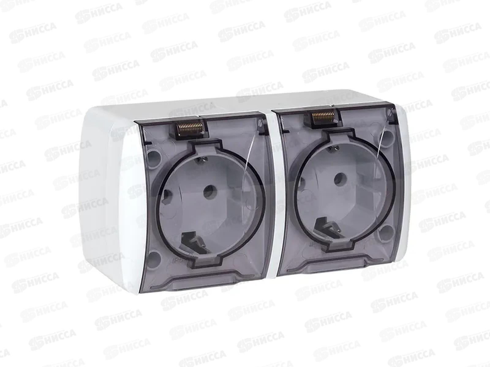 Код:582316; Розетка EKF Владивосток Розетка двойная 16А с заземлением, с прозрачной крышкой, IP54