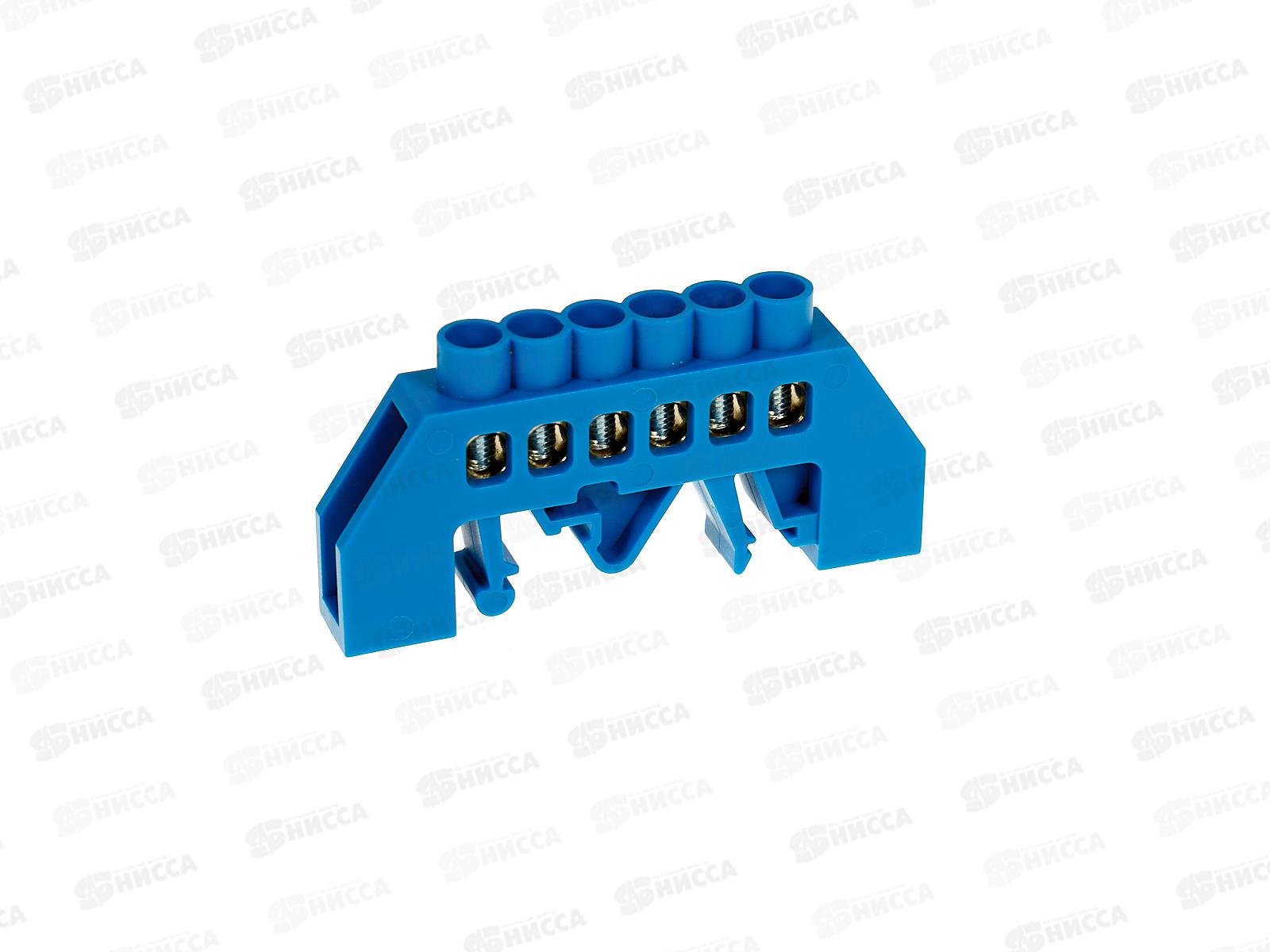 Код:593090; Шина нулевая "N" (6*9мм) 6отв. латунь синий нейлон корпус