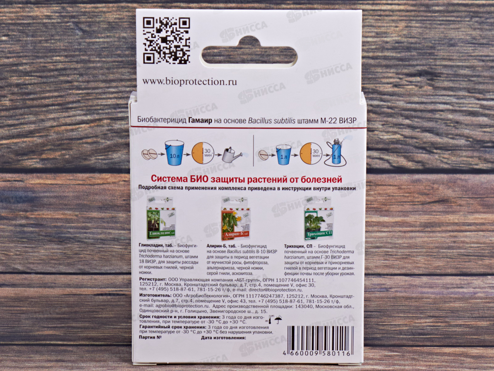 Гамаир - биологический бактерицид на основе природной бактерии Bacillus subtilis М – 22 ВИЗР, предотвращающий пятнистости на листьях, бактериальные гнили, паршу, монилиоз, бактериальный рак, сосудистый и слизистый бактериозы.