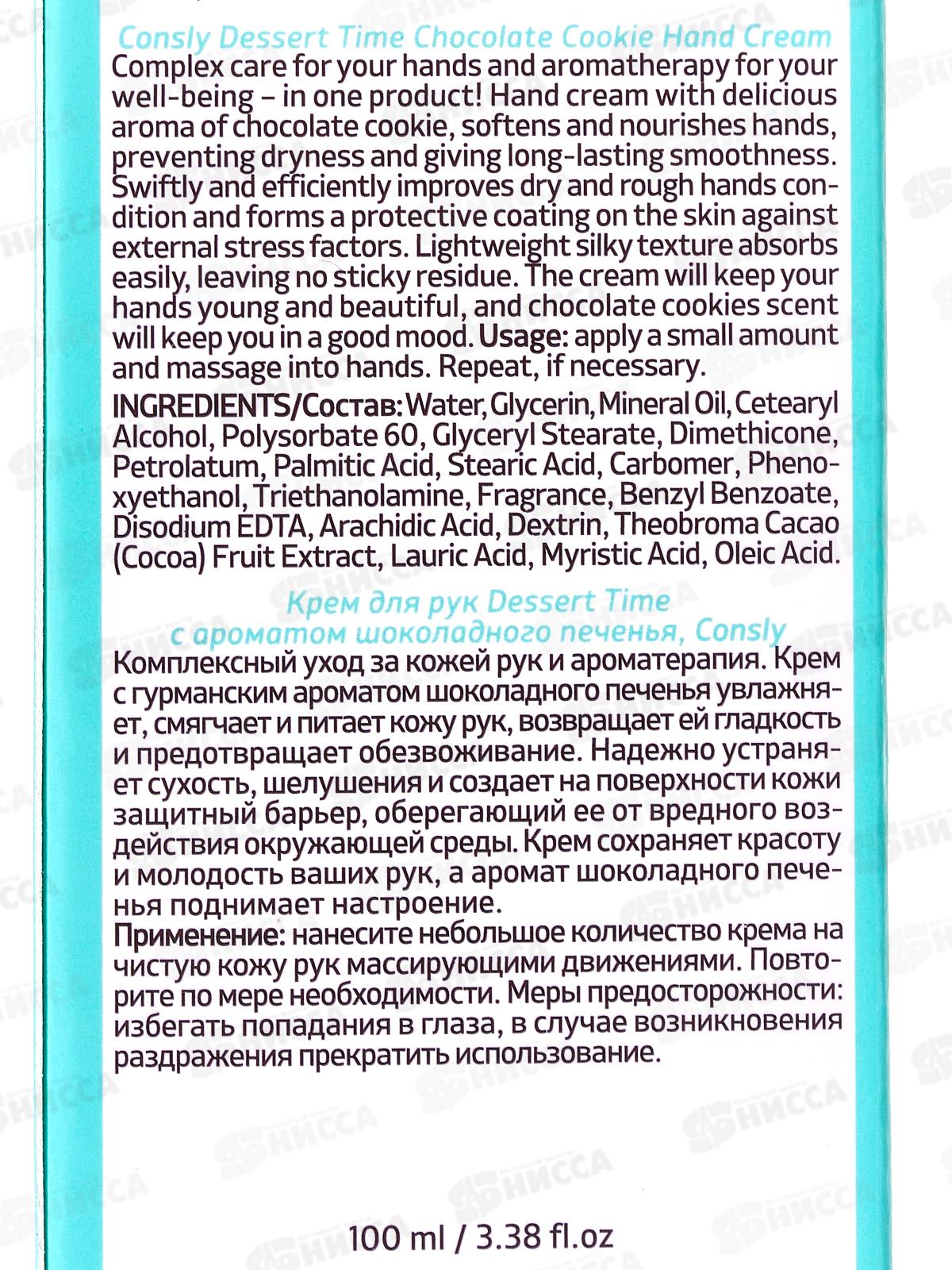 Consly Крем для рук D.T. с ароматом шоколад печенья 100мл