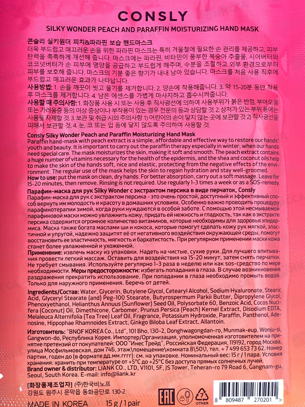 Consly Маска парафин для рук S.W. с экстр персика в виде перчаток 15г