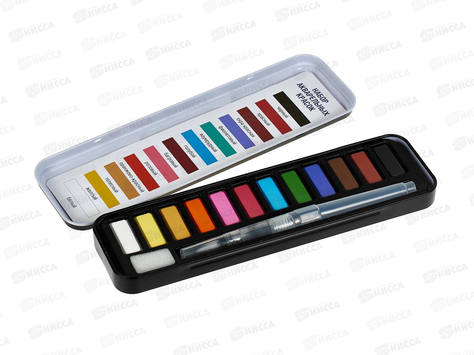 Акварель QREDO 12цв., губка, кисть, в метал. коробке, 15-3634 *100