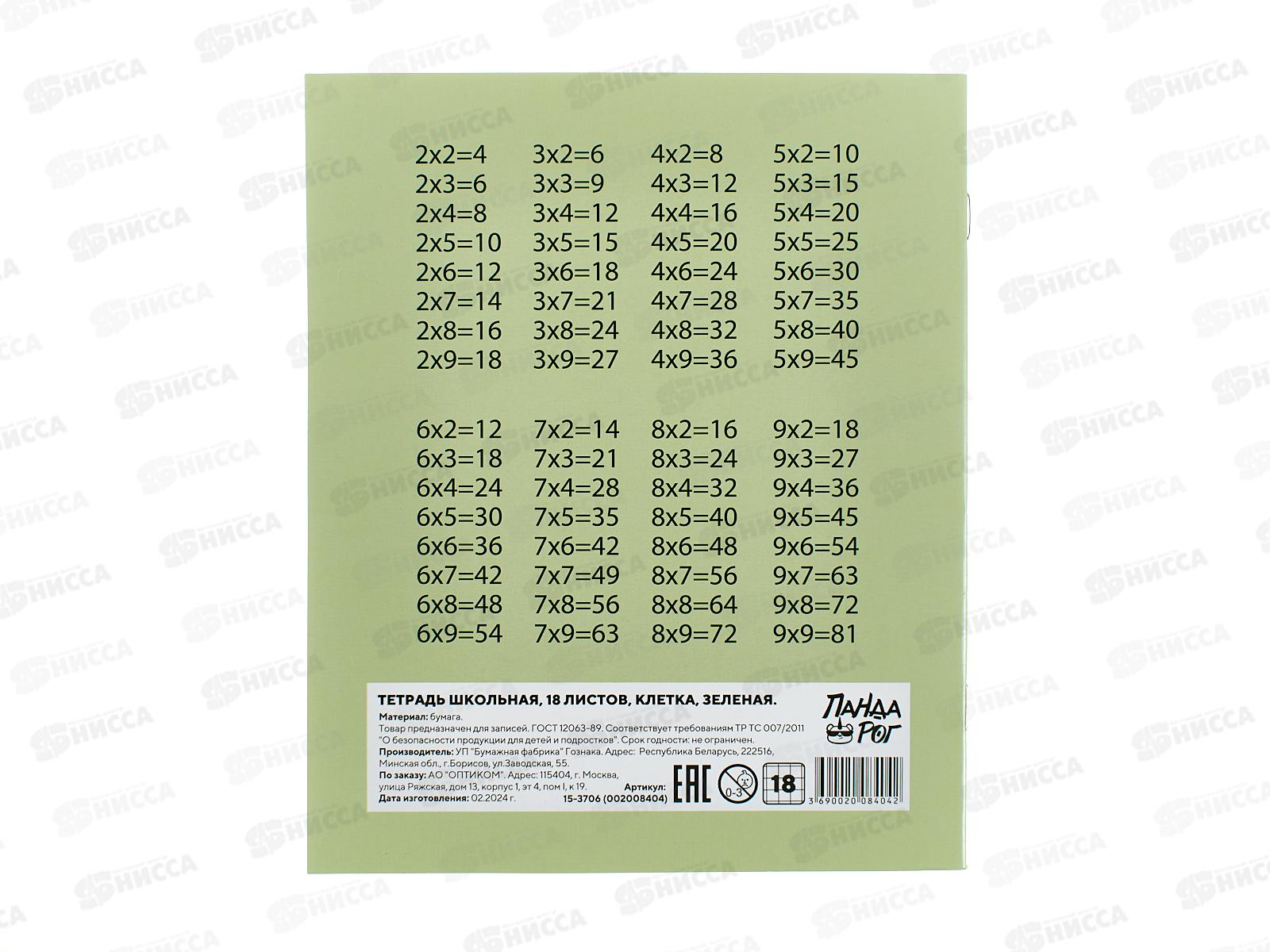 Тетрадь 18л кл. ПандаРог, зеленая, 15-3706 *220