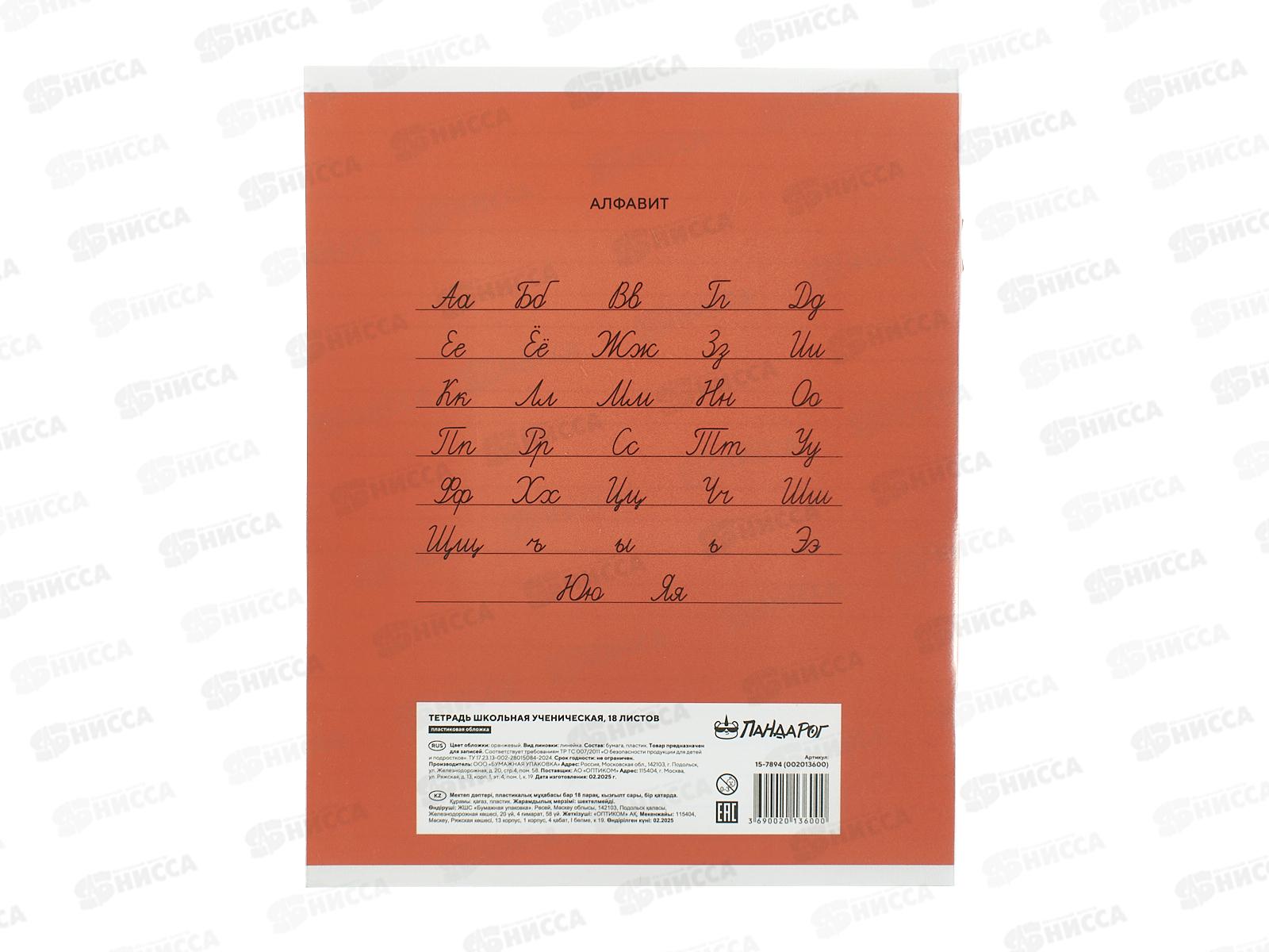 Тетрадь 18л лин. ПандаРог, плас. прозр. обложка, оранж. 15-7894 *120