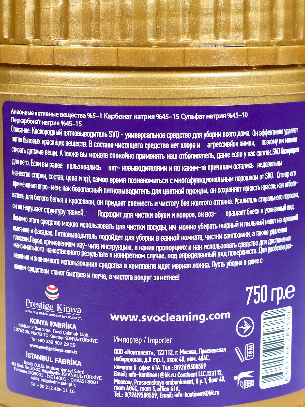 SVO Oxygen пятновыводитель для цветных вещей 750гр *12