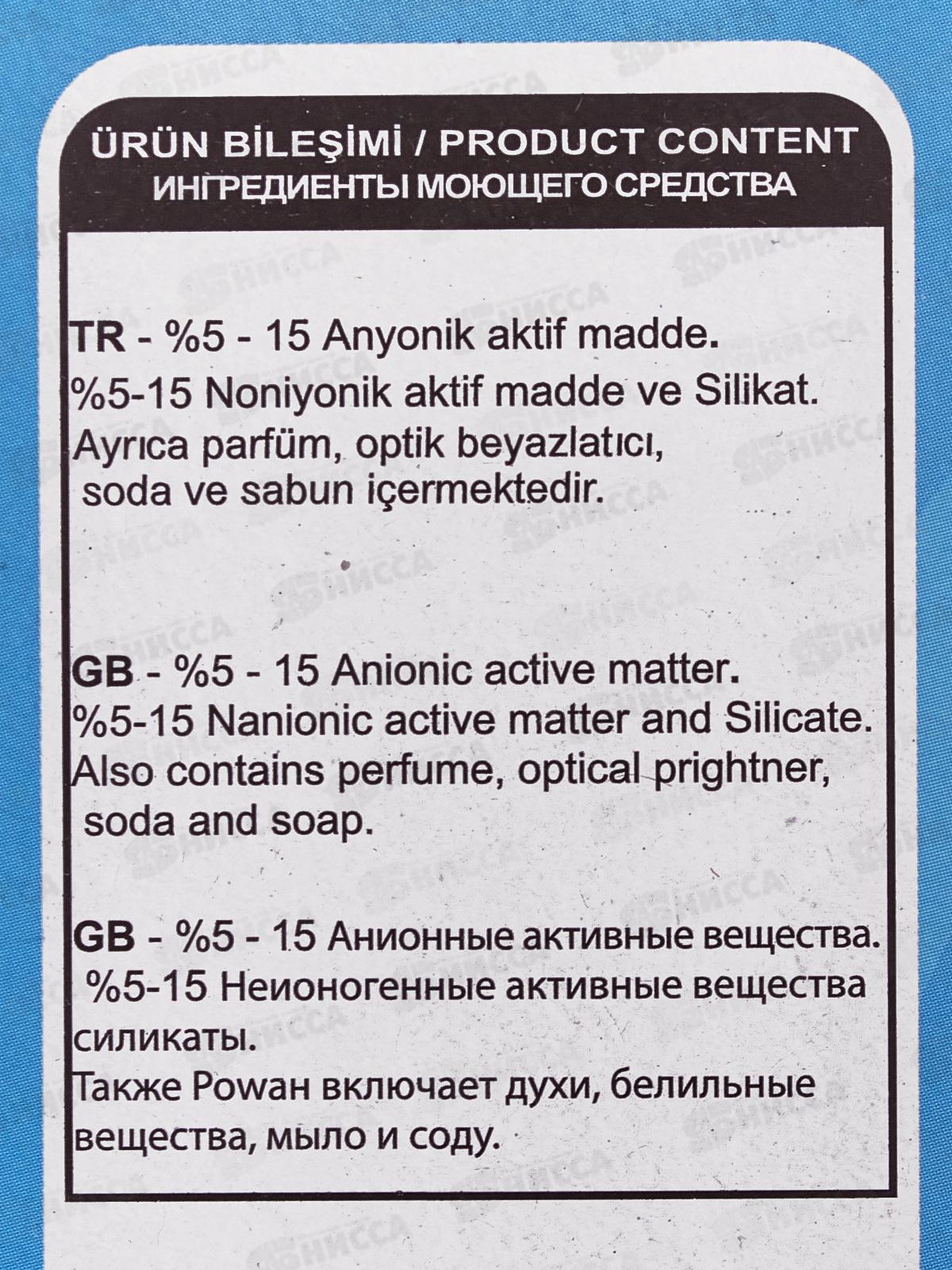 Состав: 5-15% анионные вещества, 5-15% неиногенные активные вещества силикаты.