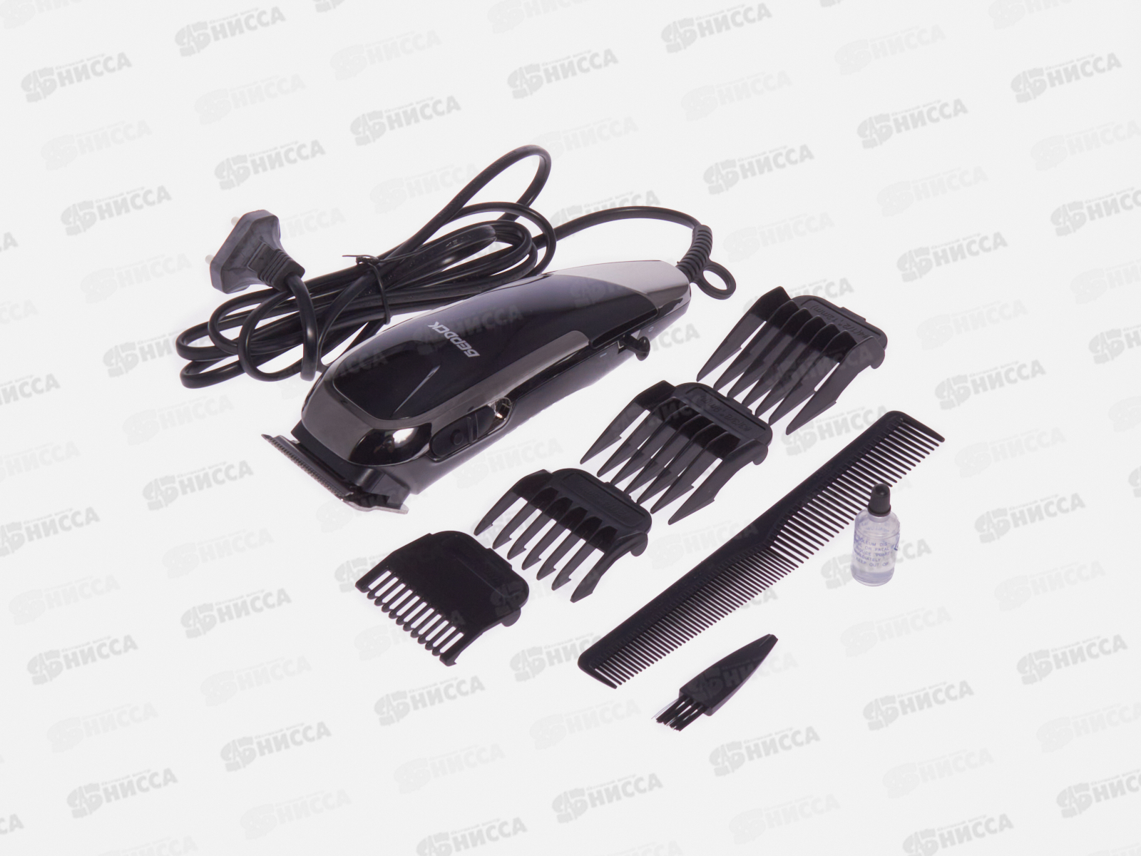 Комплектация: машинка, 4 насадки (3,6,9,12 мм), масленка, кисточка, расческа, руководство