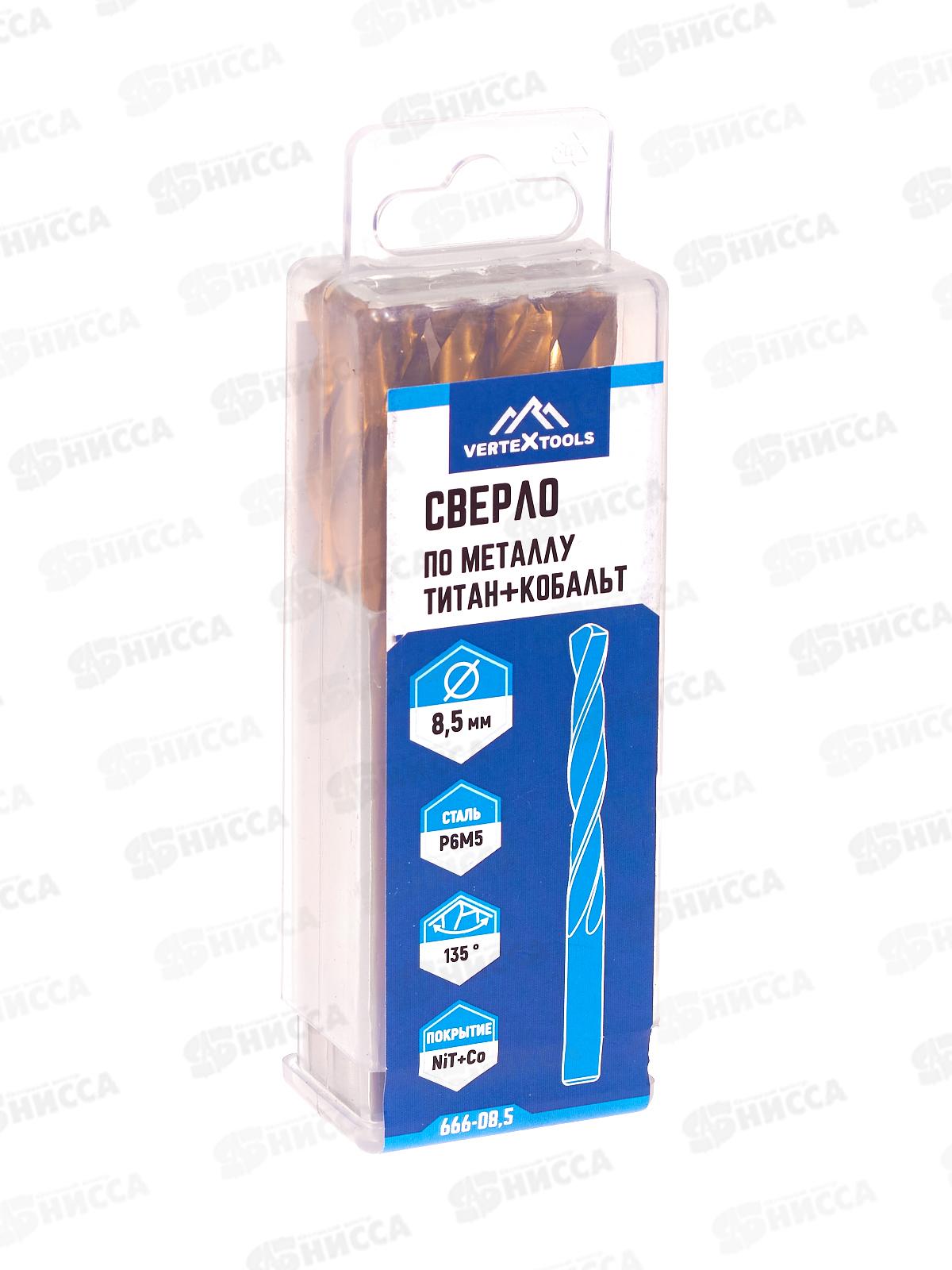 Характеристики:Бренд: VertextoolsАртикул: 666-08,5Тип товара: СверлоНазначение: по металлуДиаметр: 8,5 ммМатериал: сталь Р6М5, титан+кобальтОбщая длин...
