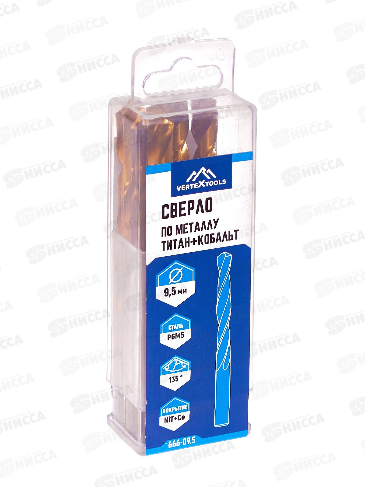 Код:591385; Сверло по металлу 9.5мм, титан+кобальт Р6М5, 666-09,5 *5