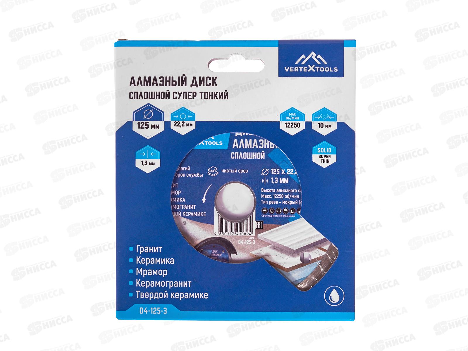 Код:598390; Диск алмазный Vertex 125мм *1,3мм Сплошной супер тонкий