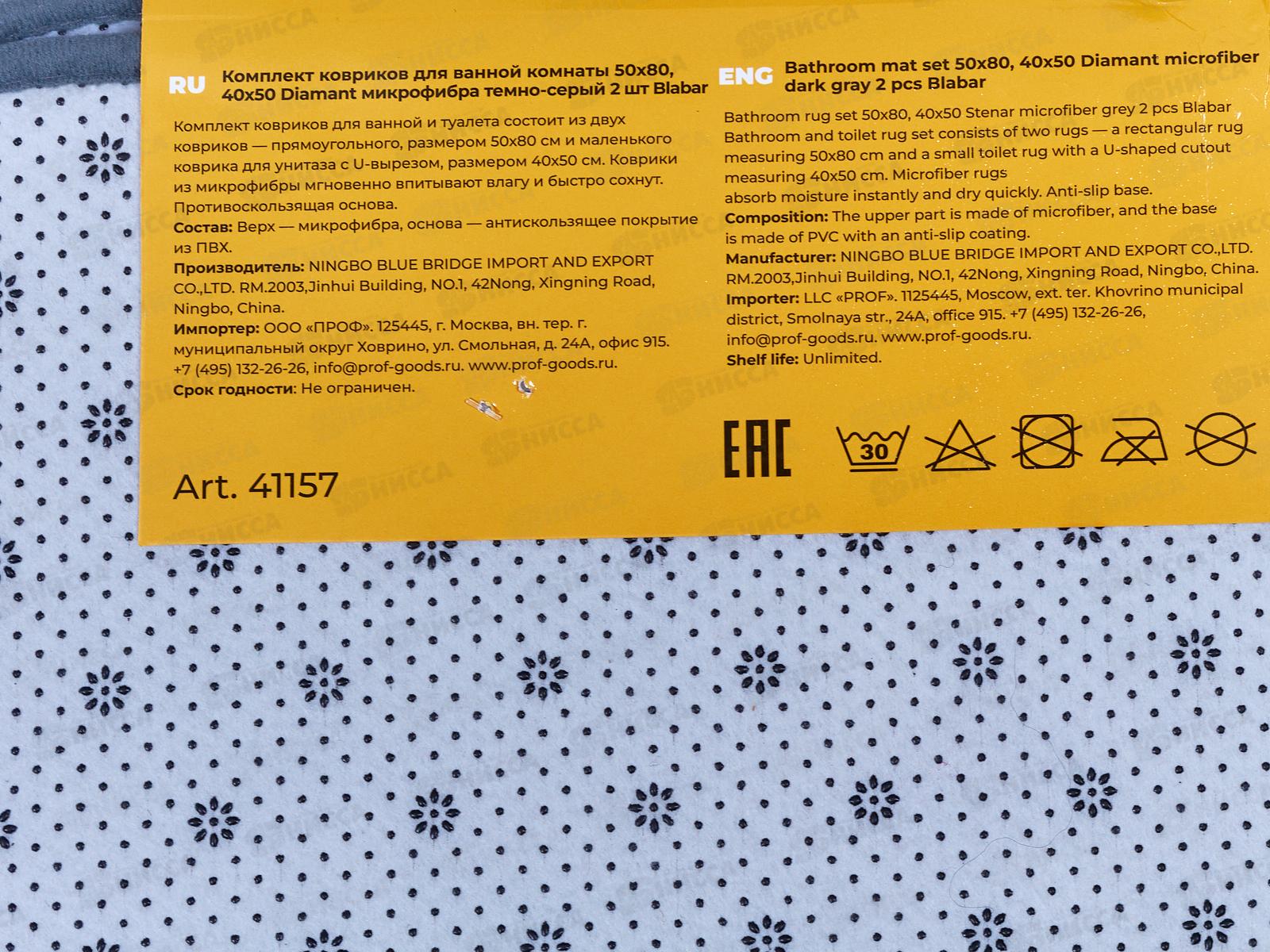 Набор коврик. д/ванной и туалета "Diamant"микроф., тем.серый 2шт 41157