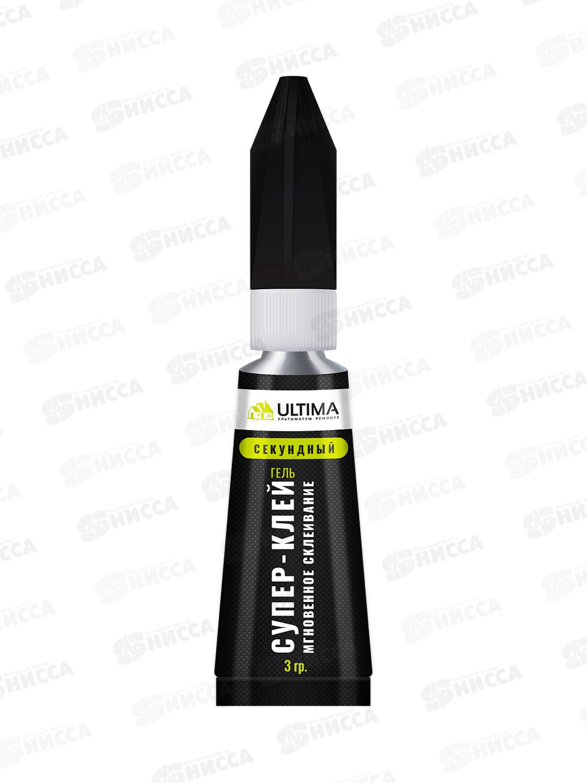 Код:597855; Супер клей ULTIMA гель секундный 3г модифицированный цианакрилат, прозрачный *12/576