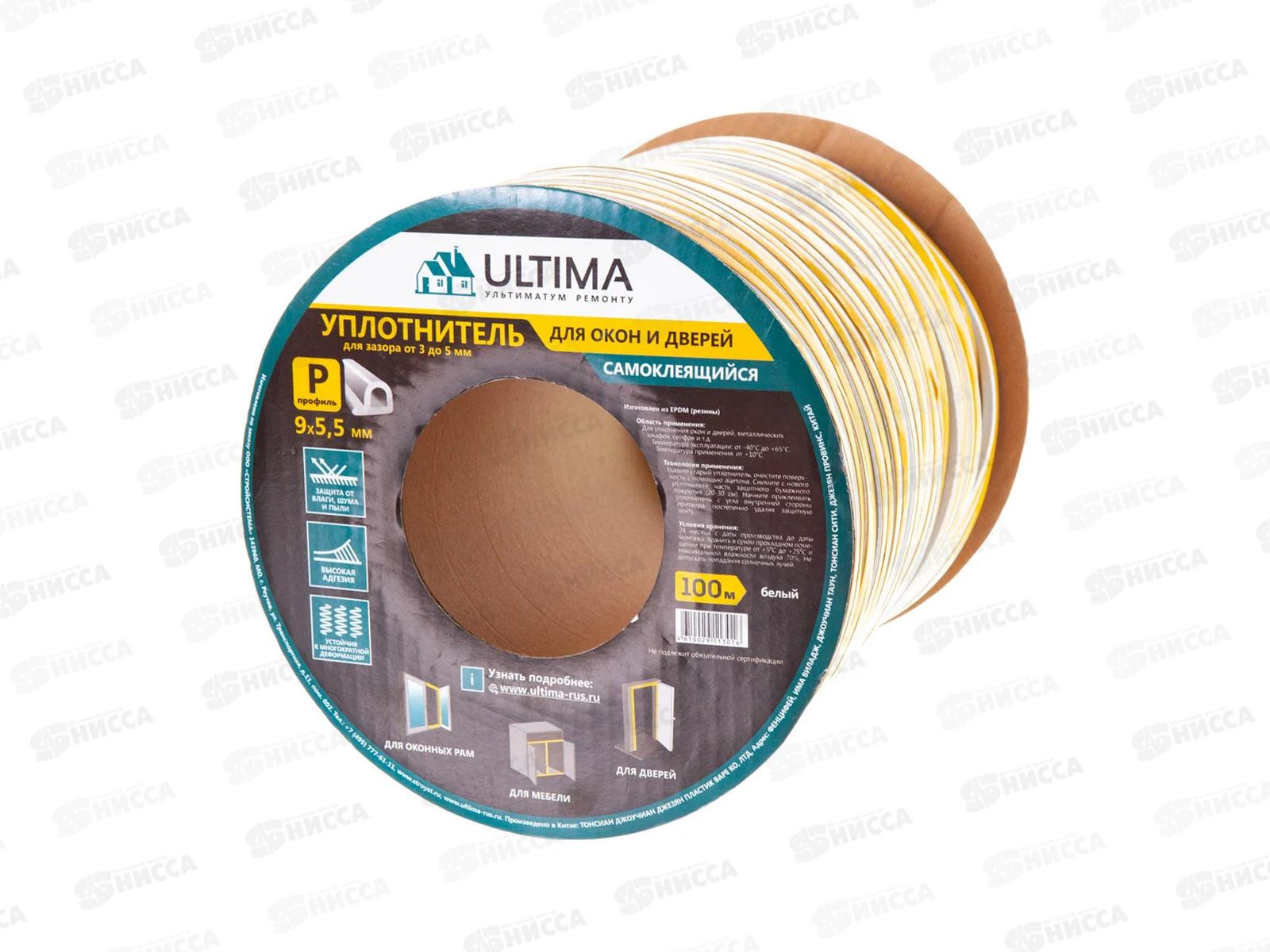 Код:597868; Уплотнитель самоклеящийся ULTIMA 9*5,5мм P-100м (белый) *6