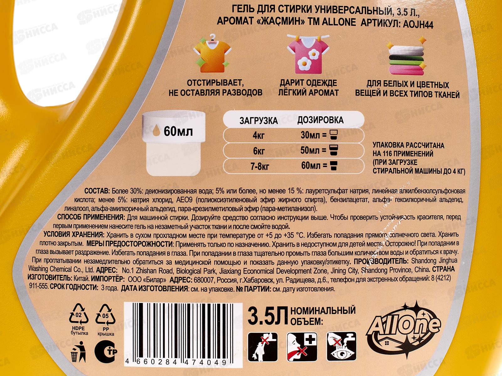 Allone гель для стирки 3,5л универсал для в/т/с Жасмин *3