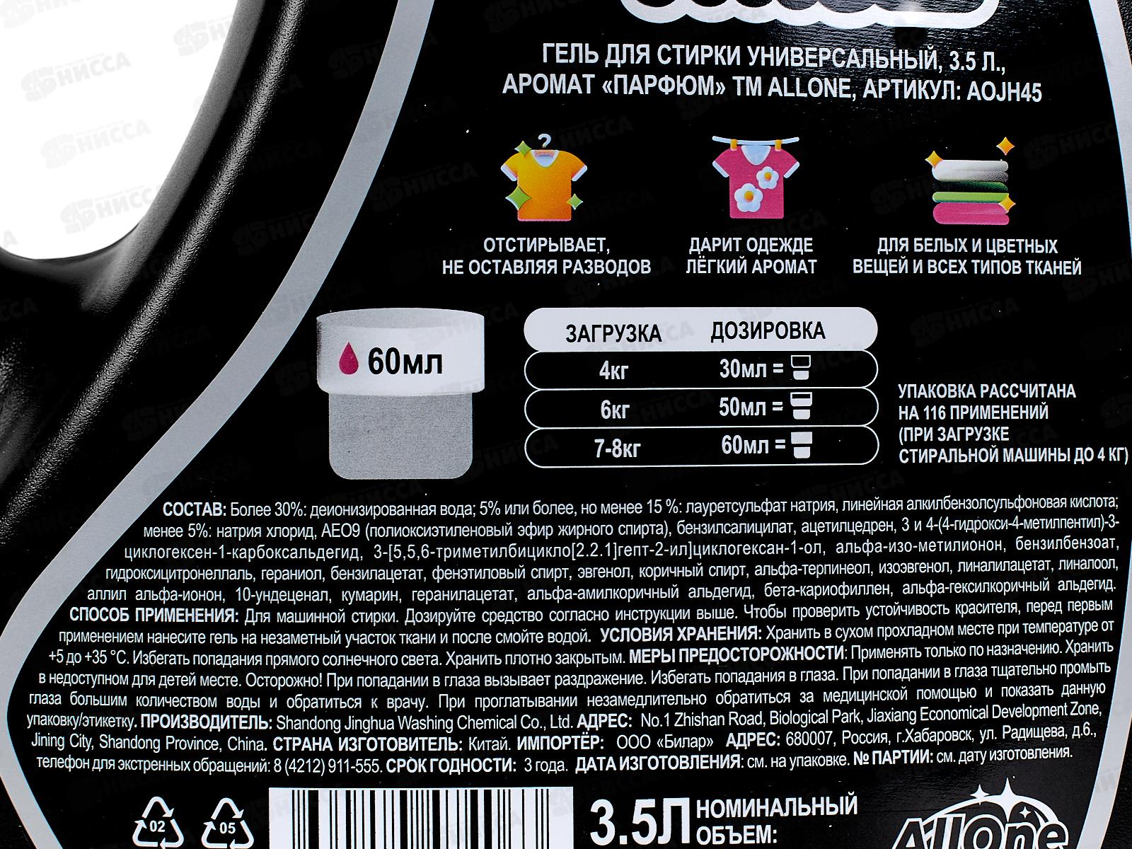 Allone гель для стирки 3,5л Универсал Парфюм *3