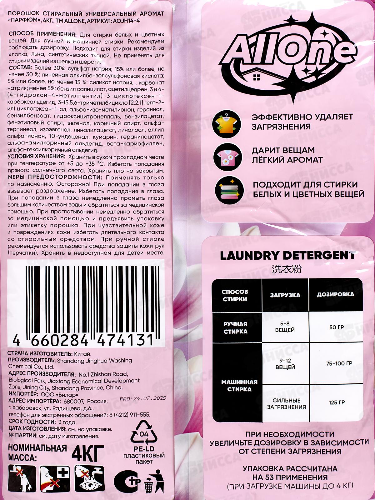 Allone порошок для стирки 4,0кг универсал Парфюм *3