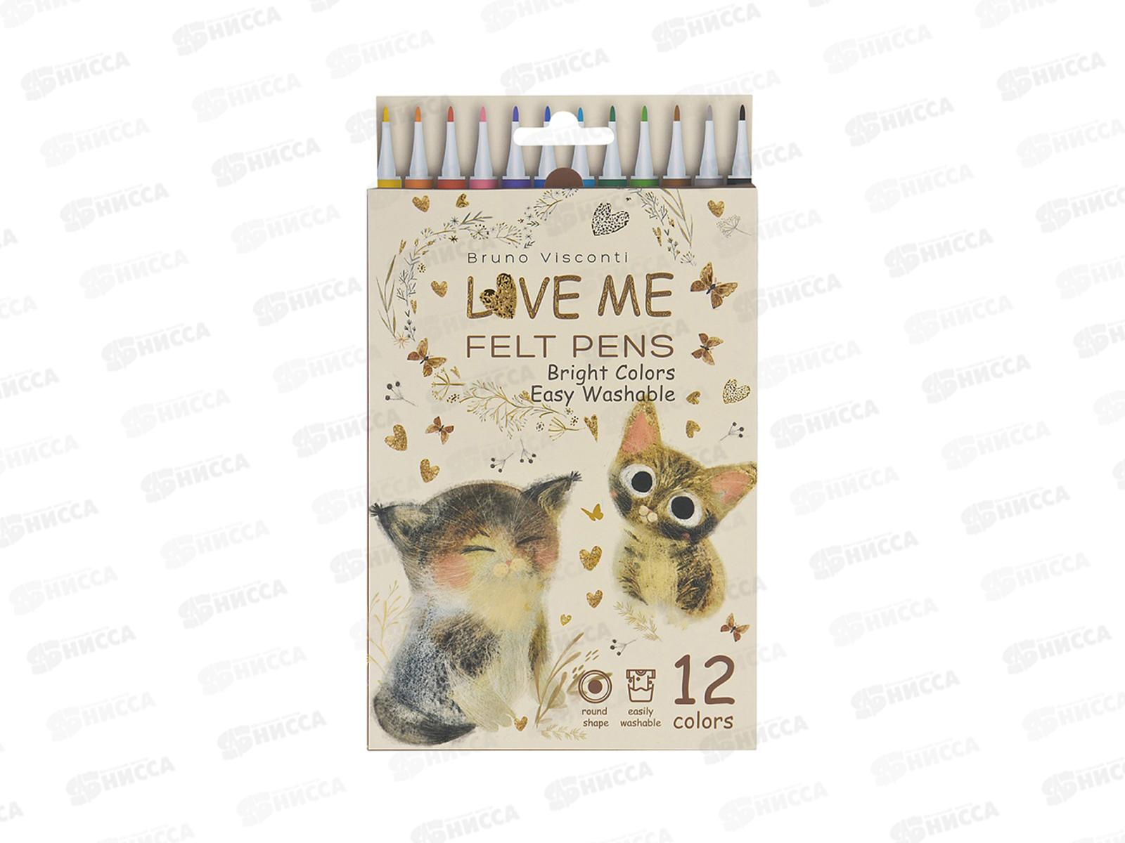 Код:606195; Фломастеры 12цв. B.V. Love me Милый котик 32-0076 *24