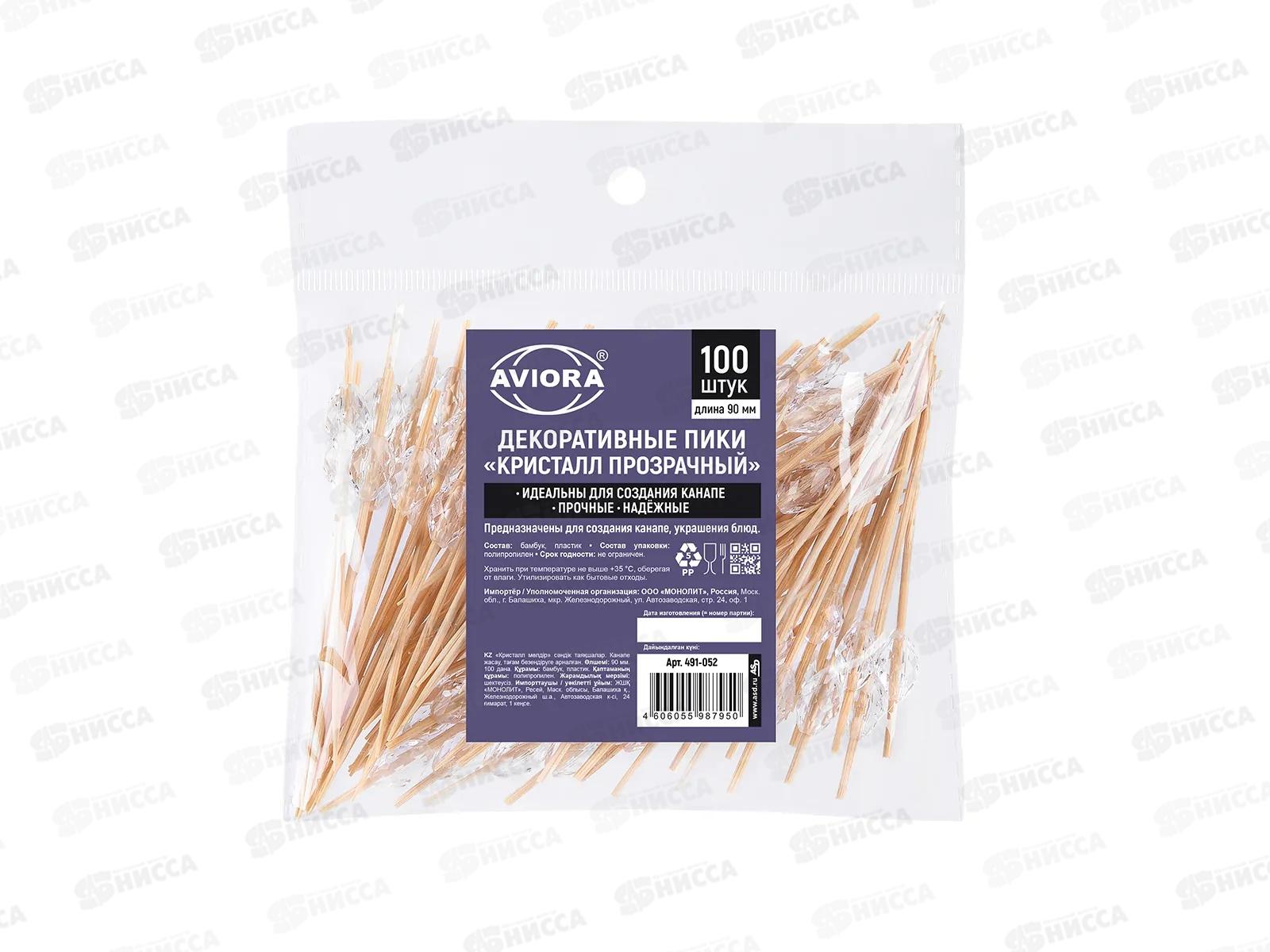 Пики бамбук AVIORA Кристалл прозрач 90мм 100шт пак 491-052 *50