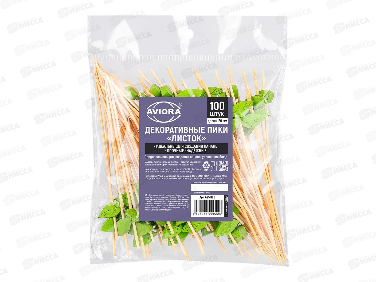 Пики бамбук AVIORA Листок 120мм 100шт пак 491-086 *50
